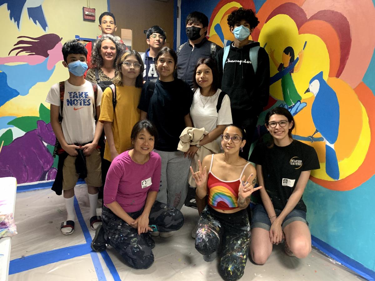 As you walk around the campus, you will see colorful banners and posters that reflect our new purpose and vision statements, as well as our core values – Safe, Open-minded, Accountable, and Respectful (SOAR). Thrive Collective, a NYC arts mentoring organization, teamed up with school students to create two murals that reflect the school’s culture. The colorful murals grace the first-floor hallway by the school library and were painted by high school and middle school students under the guidance of Thrive Collective artist Colleen Kong-Savage and art teacher Patricia Ordonez.