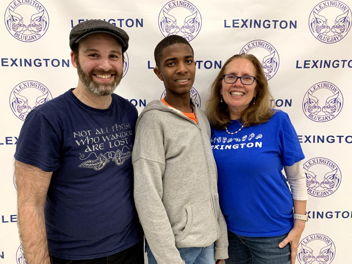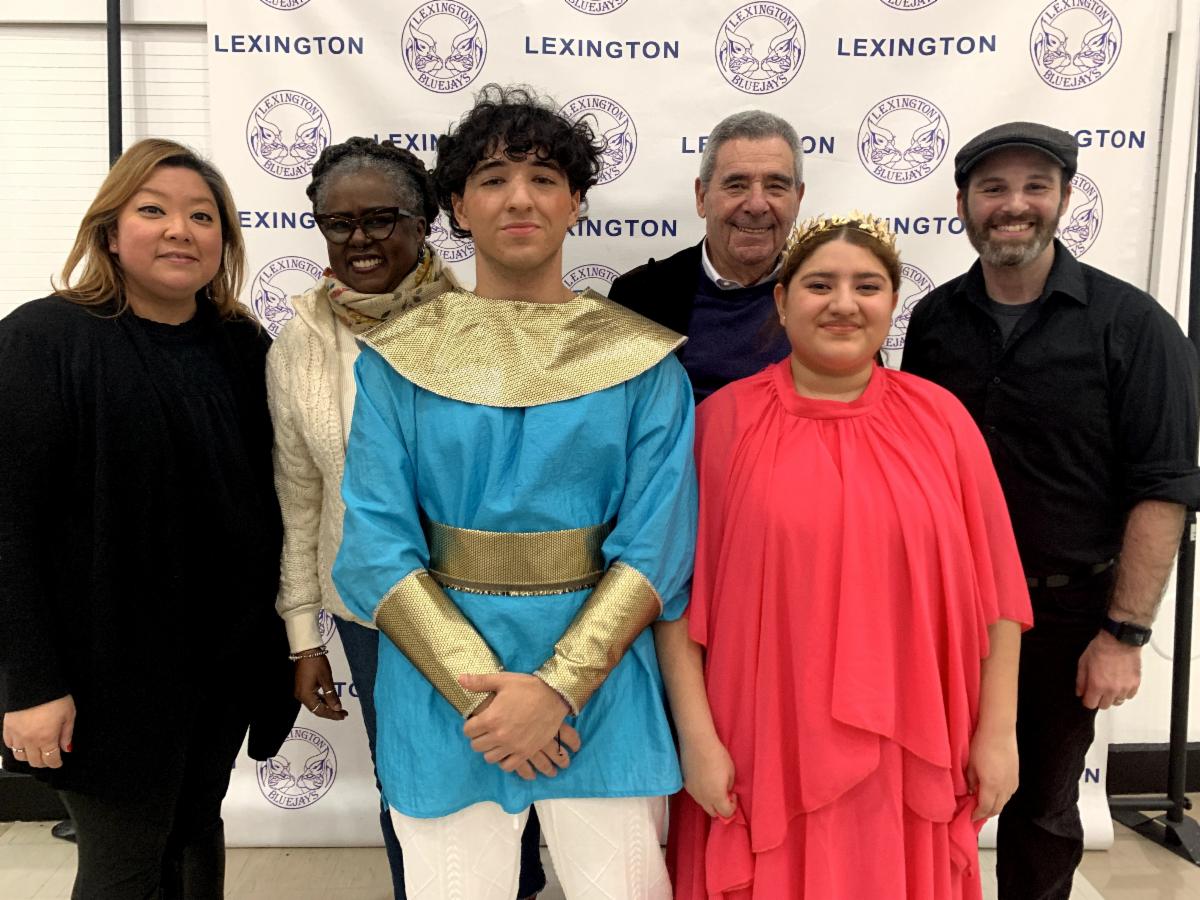 Lexington Board of Trustee member Sara Basson (far right) congratulated artistic director Jared Lopatin and cast member Osaffa Jordan (Benjamin) on an amazing opening night! | |