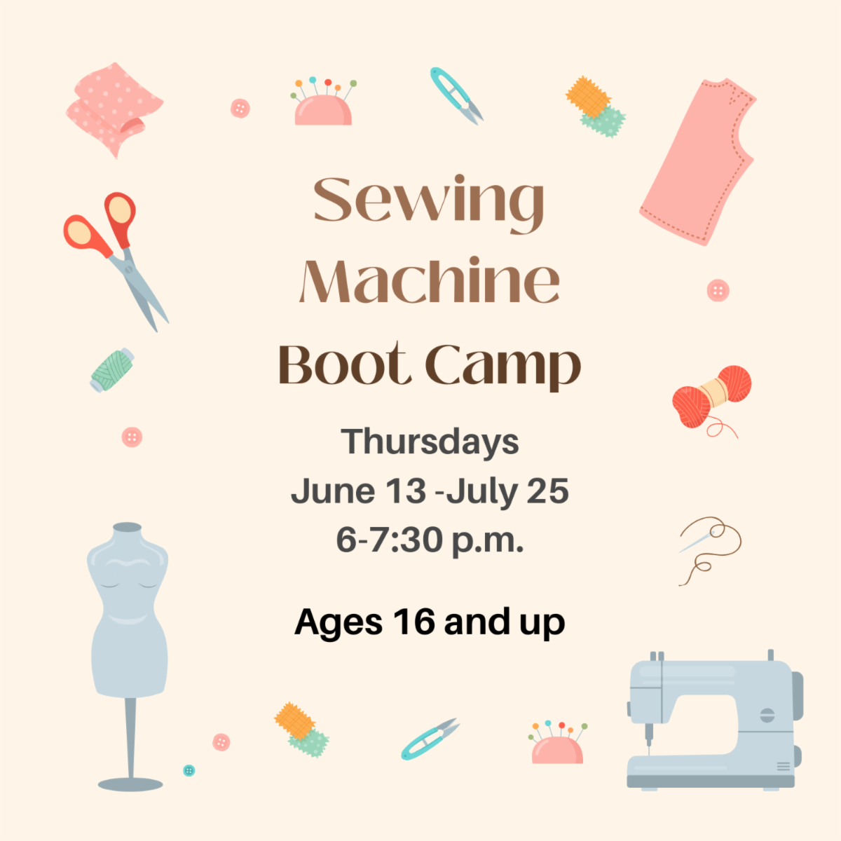 Sign up for 6-session sewing boot camp for beginners and early users. The workshops introduce participants to essential sewing machine functions and basic machine sewing skills. At the conclusion of the series, participants will be certified to borrow the library’s sewing machines, and have completed two simple projects to take home.