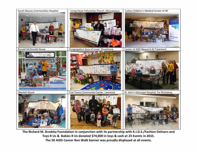 - The Richard M. Brodsky Foundation sponsors the only AIDS run or walk on Long Island. June 11 will be our 10th annual 5K AIDS Cancer Run Walk. Last year we donated $74,000 in toys, cash + clothing to organizations supporting children and people living with HIV and cancer on Long Island.