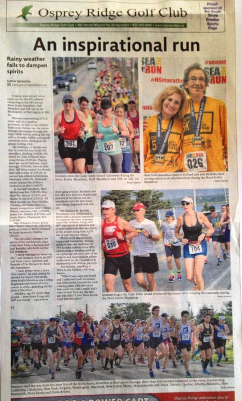 The local media featured Richard and Jodi Brodsky running the July 24, 2016 Nova Scotia Marathon, photo: courtesy of Kathy Johnson
