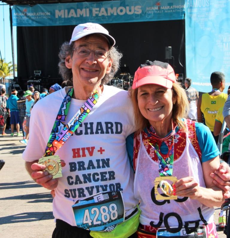 Richard and Jodi Brodsky finishing the 2015 Miami Marathon. I will do everything I can to help eliminate the stigma of AIDS. I want others living with HIV and cancer to live a happier, fuller life and that would include running or walking. I have written numerous appeal letters to the Boston Marathon organizers and I have been told on three occasions the only way I can run is if I raised money for an approved Boston Marathon charity. ($3,000 - $5,000)