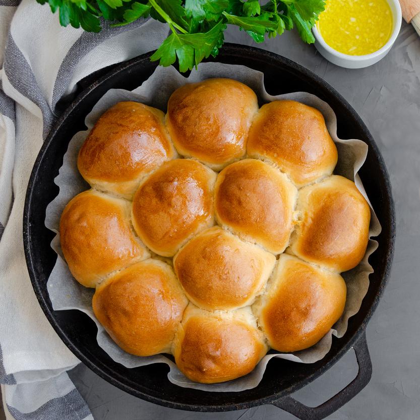 These light fluffy Angel Biscuits are as if buttermilk biscuits and Parker House rolls had a child. They are great with any meal—especially breakfast! If you don't have a cast iron skillet, you can use a baking dish or sheet.