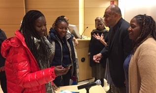 Carl with Professor Mia White, Dean Michelle DePass, and students of the New School, at the "Race and the Environment" lecture on November 15.