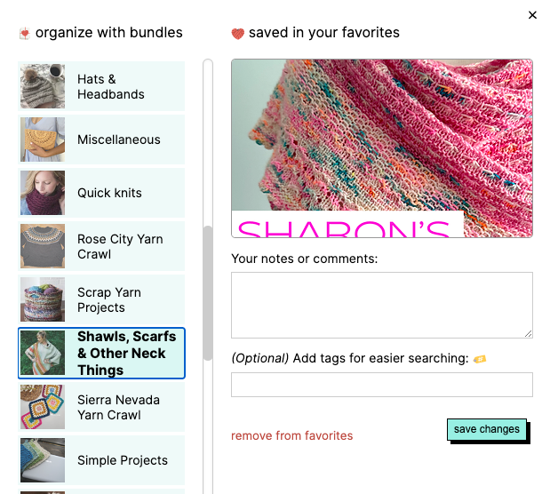 Once you've got your bundles set up, finding the perfect pattern becomes a breeze, especially with Ravelry's advanced search feature.