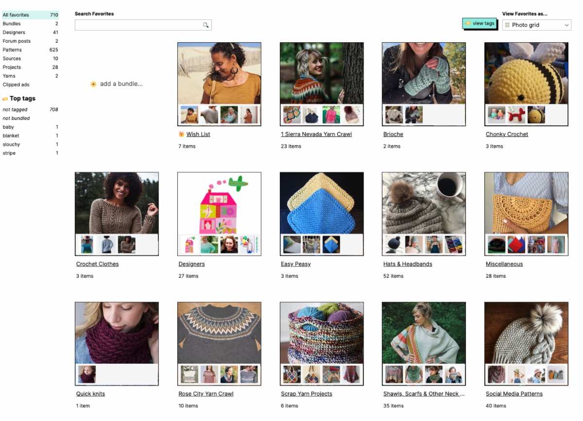 Add Patterns to Your Bundle: Now that your bundle is created, you can start adding patterns to it. Go back to your Favorites list, and under each pattern, you'll see a little heart icon with the option to "Add to Bundle." Click this, select the appropriate bundle, and voila! Your pattern is neatly organized.