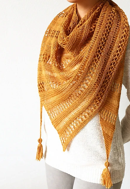 This pattern can be used as a base for experiments, as neither yarn weight nor gauge is critical. The number of section repeats can be adjusted as well, depending on the desired size of the finished shawl.