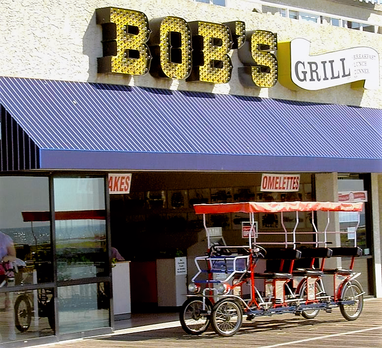 Bob's Grill located on the boardwalk has been a family owned business from the day they first opened their doors. The great location provides customers with a one of a kind view of the beach and the boardwalk, while they enjoy breakfast, lunch, or dinner. Bob's Grill serves up everything from hot, fresh doughnuts to savory lobster rolls for dinner. If you are strolling the boardwalk and you need a quick snack, or you are looking for a relaxing sit down meal, be sure to stop by Bob's Grill for breakfast, lunch or dinner. Don't forget, after breakfast, you can head out back and rent bikes and surreys for a fun ride along the boardwalk!