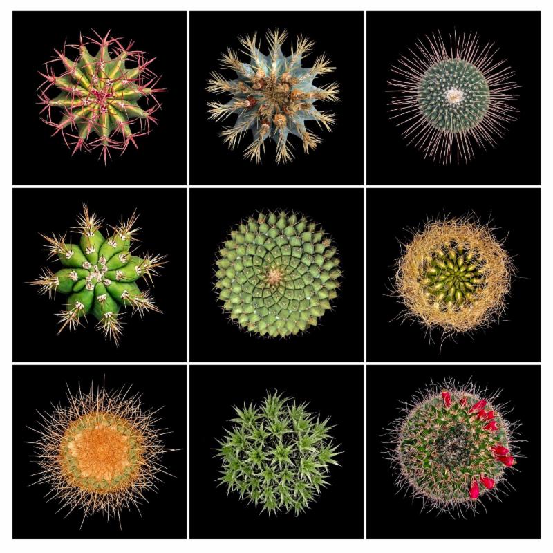 Recently I began thinking about other structural similarities found in nature. For example, the comparative pattern of a spiral galaxy and a spiral tubercle and spine pattern of a cactus. This interest inspired me to return to photographing cactus with an intent of isolating the plant in black background for the purpose of highlighting it’s bio-symmetry.