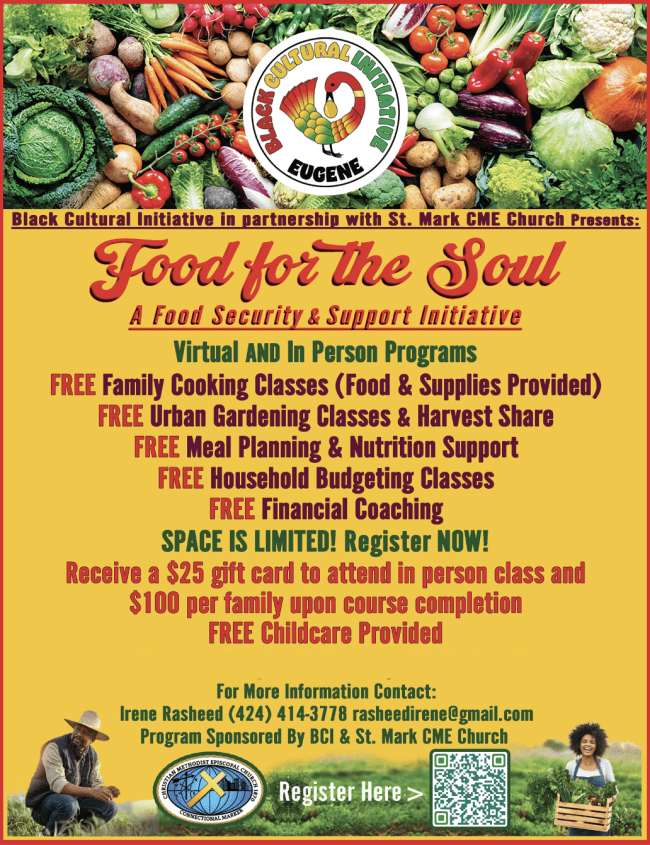 255 Maxwell Road (off River Road) in Eugene, at Our Redeemer Church (garden is located behind church).