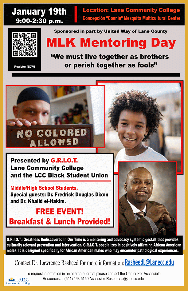 The Black Cultural Initiative has compiled a list of local community events in celebration of Martin Luther King Jr. Day, starting this Wednesday, January 10 with events at the University of Oregon, and concluding next Friday, January 19 on National MLK Mentoring Day for Black/African American Males at Lane Community College.