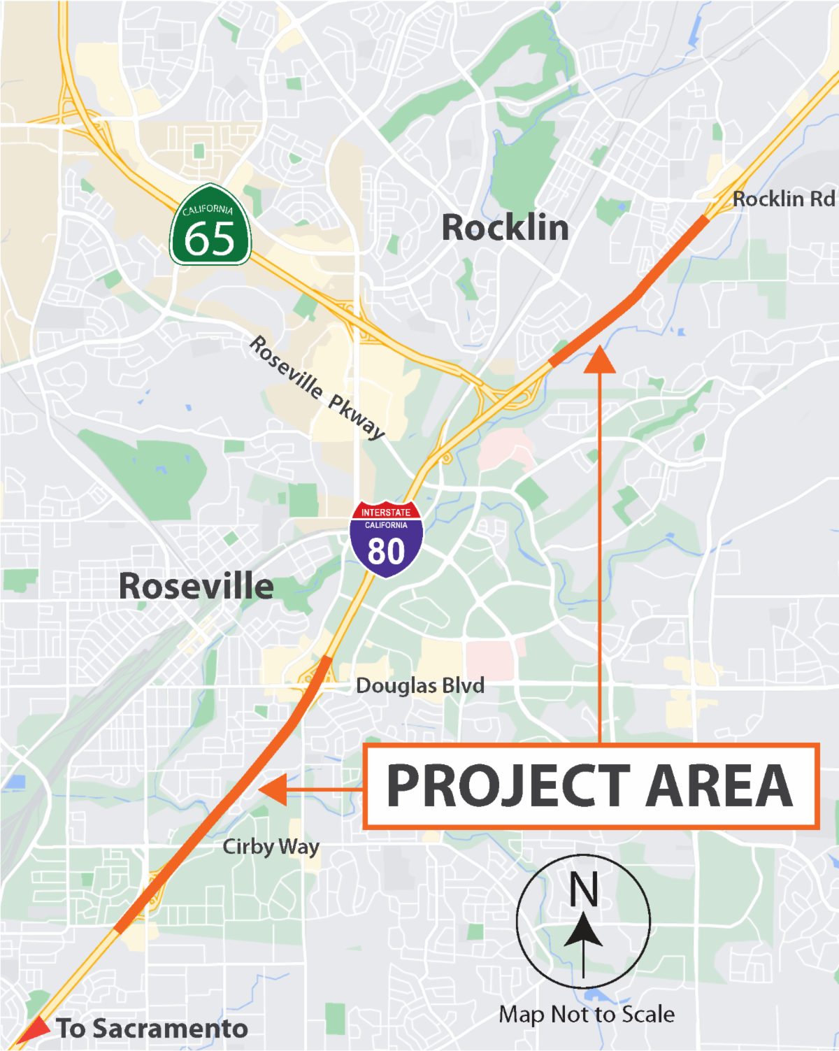 Ghilotti Construction Company, Inc. of Santa Rosa is the prime contractor. The project is expected to be completed by spring 2025. At that time, the interstate will have an auxiliary lane on eastbound I-80 between State Route 65 and Rocklin Road and include a two-lane off-ramp. A fifth lane will be constructed on westbound I-80 between Douglas Boulevard and Riverside Avenue and include reconfiguring the Douglas off-ramp from two lanes to one lane.