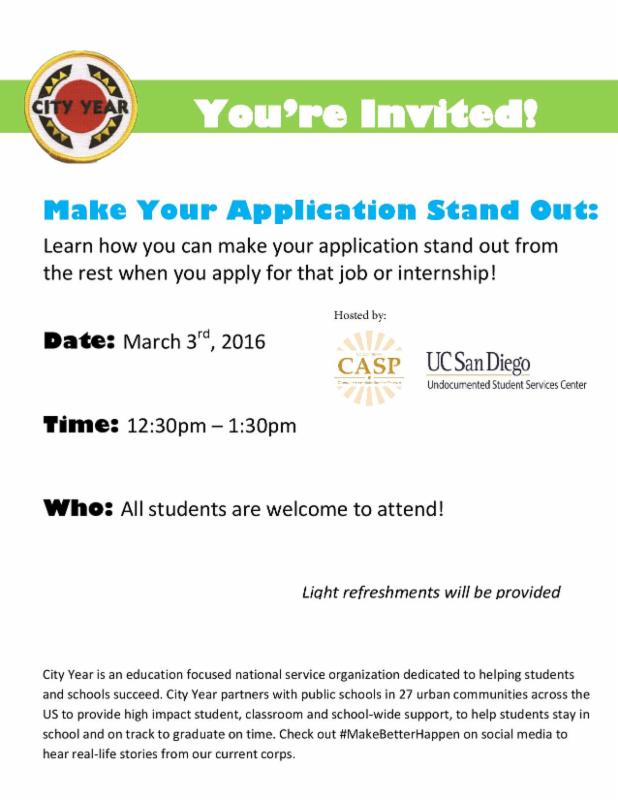 City Year, in conjunction with CASP and the Undocumented Student Services Center, presents:
