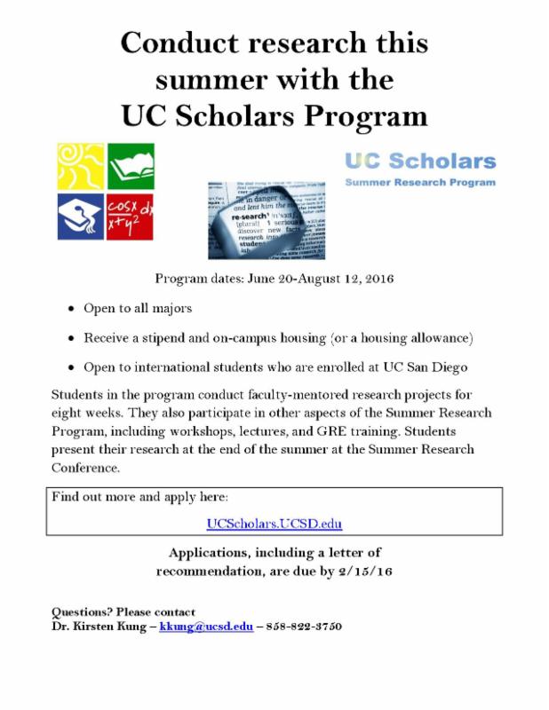 The UC Scholars Program is a 8-week, full-time research experience for undergraduates, supported by UC San Diego, Student Affairs.