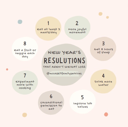 The new year can be an exciting time for some, but for others, it can create a lot of anxiety. This time of year is often when you hear people saying “new year, new me!” and making many lifestyle changes. While it’s not a bad thing to want to make changes to improve your life, often times these goals can be tied to aspects of diet culture, such as starting a crash diet or a super rigorous workout regimen.