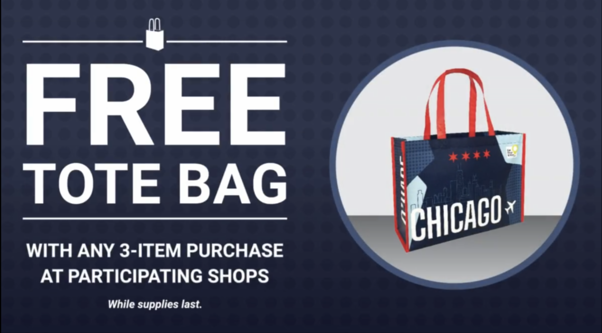 Shop at O'Hare's retailers this summer and carry your purchases to your gate in style. Claim a FREE limited-edition O'Hare tote bag with a purchase of three items or more from participating O'Hare concessionaires. Offer valid while supplies last.