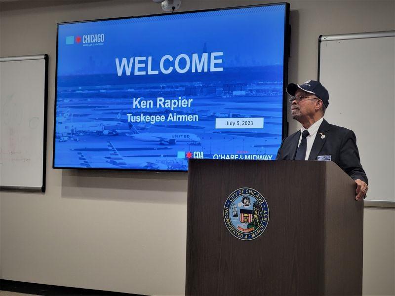 Ken Rapier, President of the Tuskegee Airmen Chicago “DODO” Chapter, spoke to CDA summer interns this month. Rapier's word for the day was "success" as he shared the Tuskegee Airmen's history and the impact the group made on the world during WWII despite racial barriers. Rapier recapped one successful mission in which the airmen shot down a dozen enemy aircraft earning the group the name "Red Tail Angels" for protecting bomber pilots in battle.