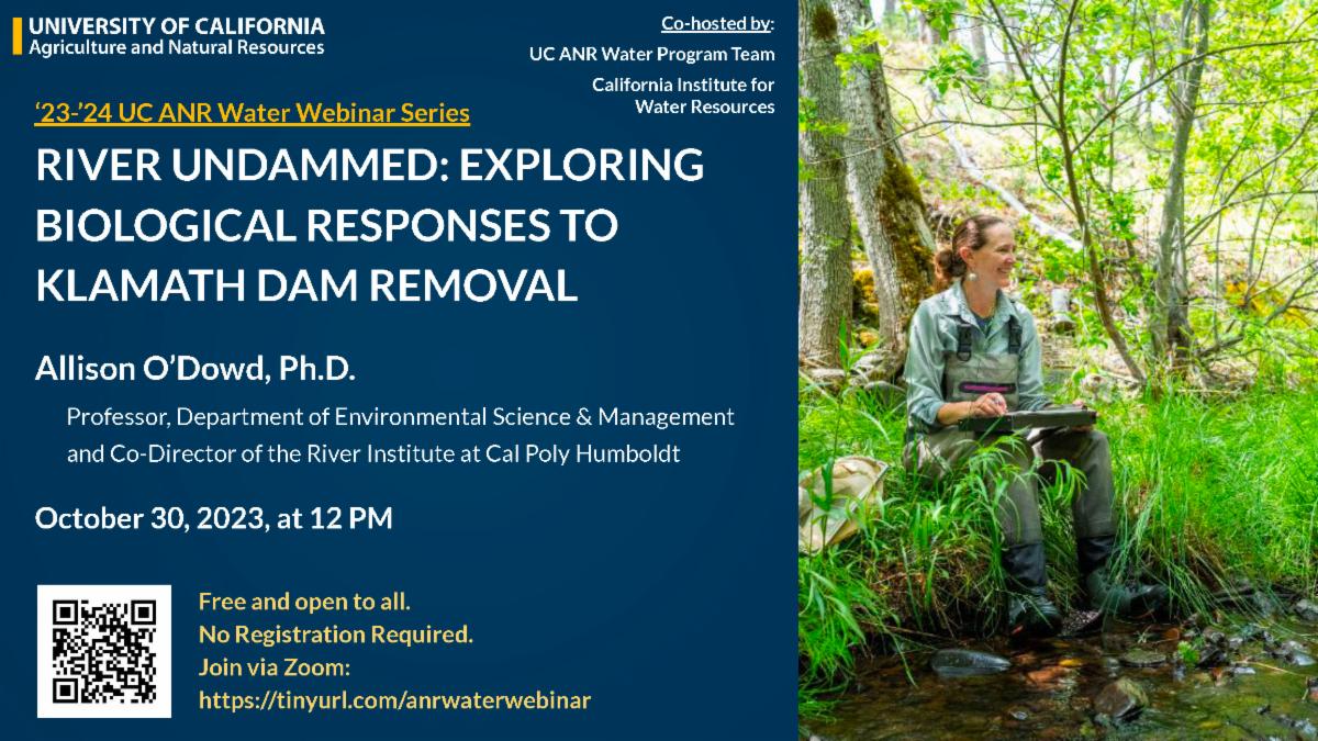 Join us for the 5th season of the UC ANR Water Webinar series on the fourth Monday of the month at 12pm PT. Recent speakers have included Ali Montazar, UCCE Imperial; Karrigon Bork, UC Davis; and Erica Siirila-Woodburn, Lawrence Berkeley National Lab.