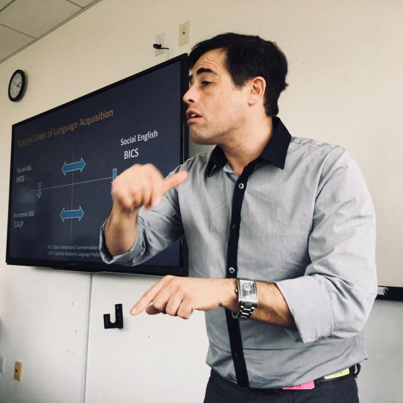 Student Outcomes Teacher Specialist Michele Berke, PhD, and CORE Supervisor DE Eberwein presented a session on ensuring language opportunities for all Deaf children in California. CSD’s data collection, assessments, and methodology were touched upon during this session, along with families’ stories and experiences.
