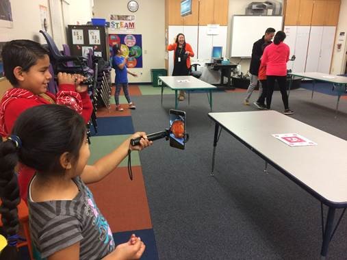 kits for students to experiment within Augmented Reality sessions. Augmented Reality (AR) is a mixed environment consisting of the real life world and computer-generated images or videos in a real-time view. Students were able to view 360 degrees of AR items while moving around.