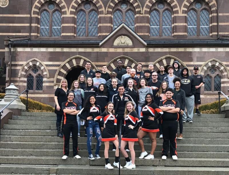 California School for the Deaf Eagles teams pose for a group picture on the steps of Chapel Hall.
