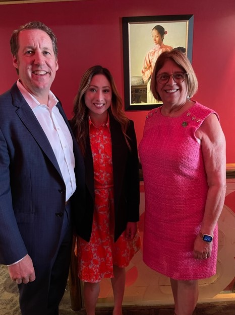 Jeff Sievers (left) and Beverly Yu (center) with CalAPA's lobbying firm Carpenter Garcia Sievers are pictured with Assembly Majority Leader Cecilia Aguiar-Curry (right) at a CalAPA-sponsored event May 15 in Sacramento.