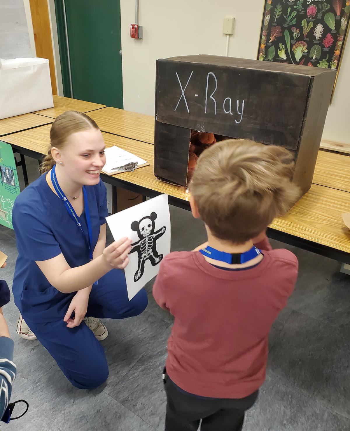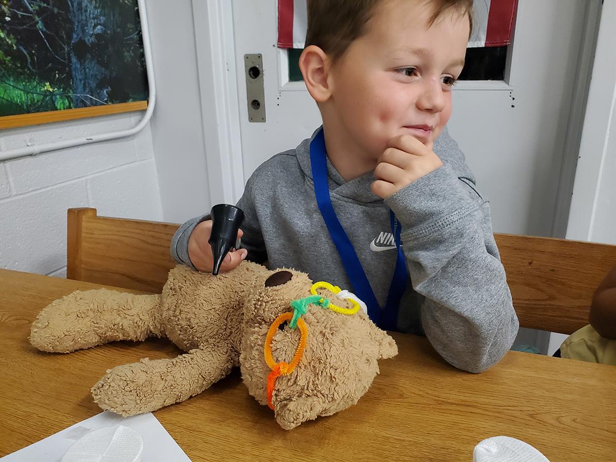 Health Sciences students hosted a Teddy Bear Clinic on May 30 with students from Traverse City Area Public Schools' Eastern Elementary. Using teddy bears as "patients," the elementary students got to learn from juniors and seniors in the Health Sciences program about some of the basic care and procedures one might expect when visiting a hospital or provider.