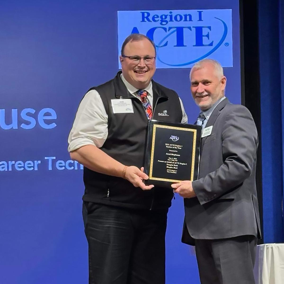 Congratulations to Career Tech Power Equipment instructor Jared Diephouse who was honored as Teacher of the Year at the Region 1 ACTE Conference in New York. The region includes D.C., Massachusetts, Connecticut, Delaware, Maryland, Maine, Michigan, New Hampshire, New Jersey, New York, Ohio, Pennsylvania, Rhode Island, Vermont and West Virginia. Read more