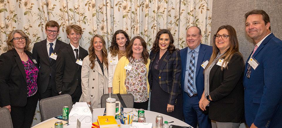 Career Tech Engineering Academy staff and students joined North Ed Assistant Superintendent Pat Lamb and Superintendent Nick Ceglarek for a statewide conference on educational innovations. Gov. Gretchen Whitmer was the keynote speaker at the East Lansing event to highlight cutting-edge education programs that are innovative and produce significant student success. What School Could Be: Michigan brought together Michigan schools that are leading the way in innovations. Representing Career Tech in the panel discussion was Engineering Academy instructor Debby Oliver and students Preston Breitmeyer (homeschooled/Buckley), Logan DeFour (Leland) and Maddy Stewart (Benzie Academy). Read more