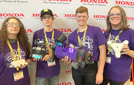 The Gears of Glory team earned a bronze medal in the sumo robot category (pictured at top) and a nomination for the prestigious Honda Innovation Award: