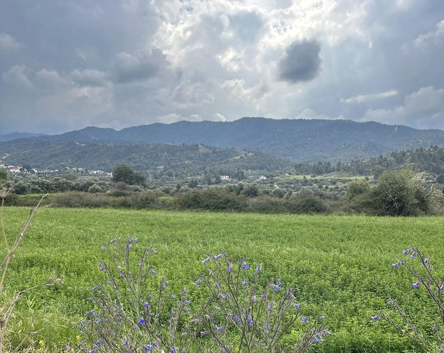 Spring is certainly here! You can see its profusion of flowers and tumultuous skies in my view over Evrychou, taken on Clean Monday (March 18).