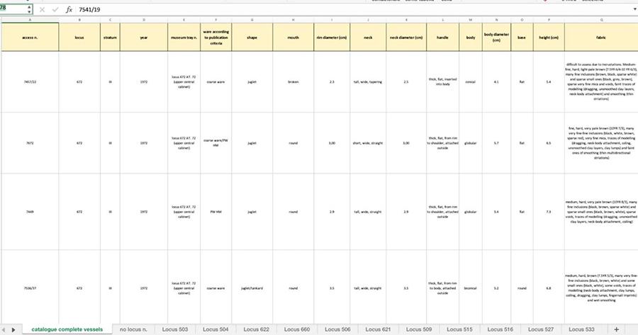 Lately, I have focused on a large pit (locus 672) on the western side of the Stratum III courtyard, seemingly of an earlier courtyard phase. A closer analysis of its content will be crucial to re-assess the chronology of this phase and, therefore, of the site. The current cataloguing process registered the presence here of Red and Black Slip pottery, which is seemingly not encountered in other heaps and pits of Stratum III courtyard and would further suggest the subdivision of the stratum in two different phases. | |