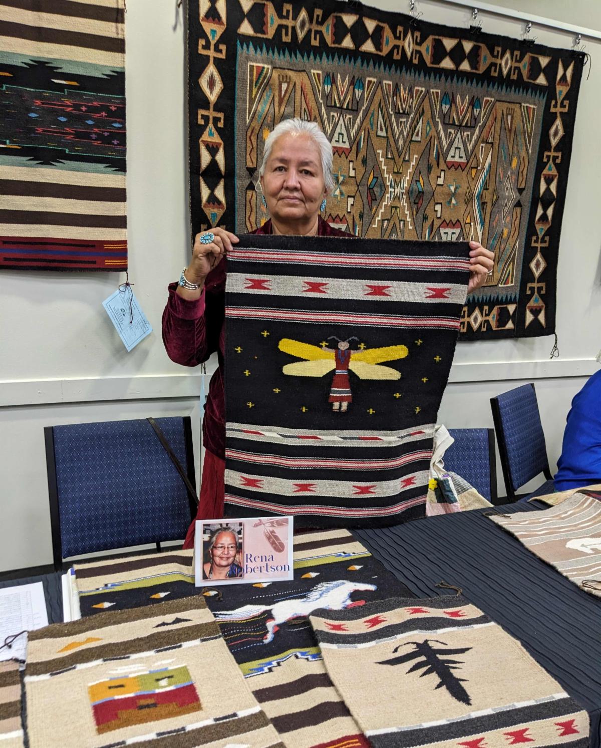 Rena Robertson from the Navajo Reservation is one of the principal weavers on the reservation. She was selling many rugs at Holland Center's Navajo Rug & Jewelry Festival.