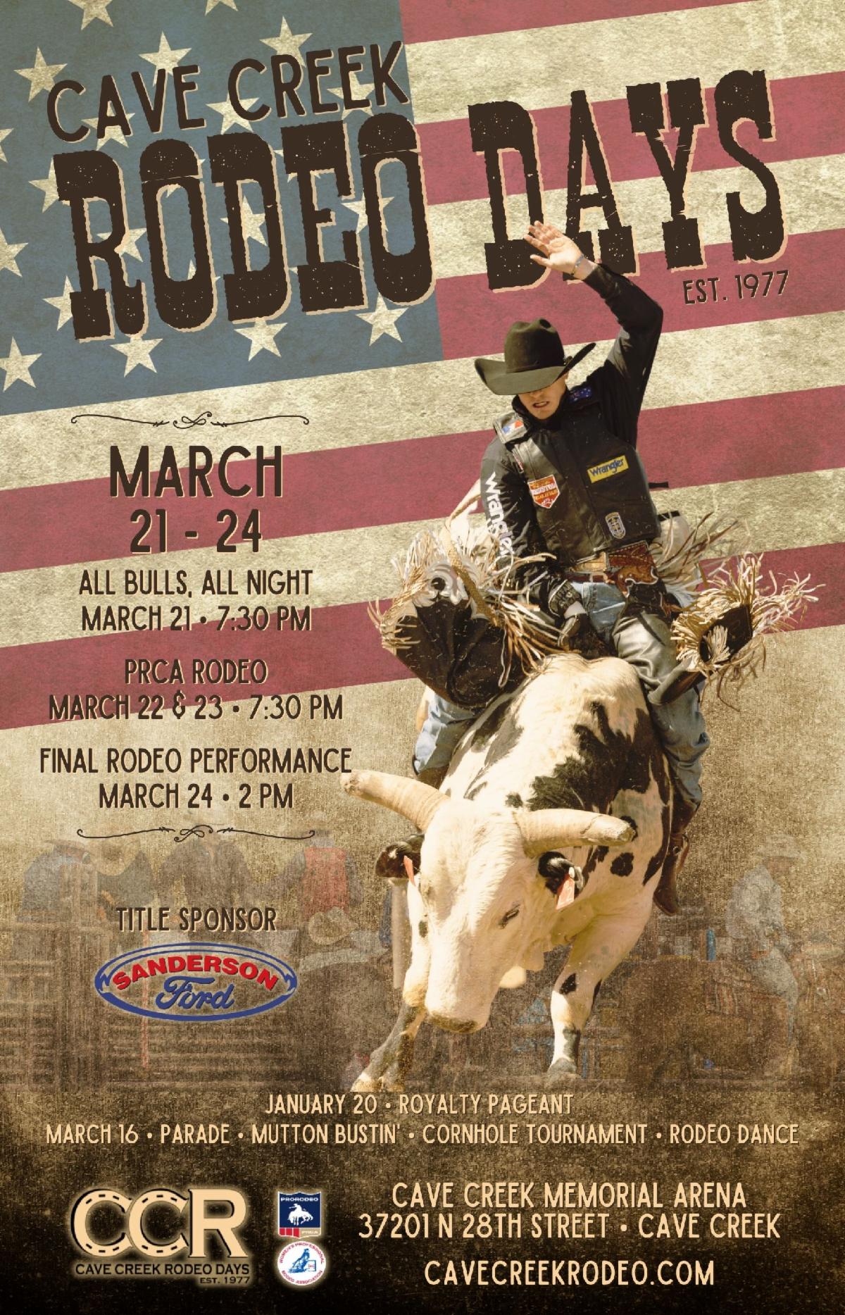 Cave Creek Rodeo Days posters are now available for pick-up and display at the Cave Creek Tourism Bureau. Come get yours! The tourism Bureau is open daily 10am-2pm.