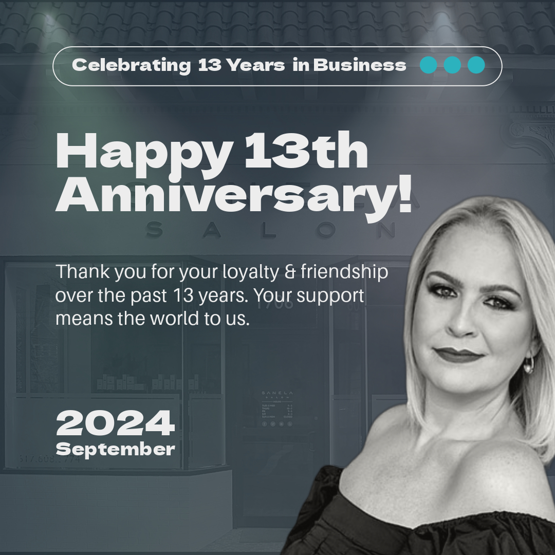It’s with gratitude that we celebrate Sanela Salon’s 13th anniversary, and we invite you to join us in this momentous occasion! Throughout the entire month of September, we’re rolling out an exclusive promotion that you simply can’t afford to miss—enjoy a fabulous 20% off all products and tools in our store! |