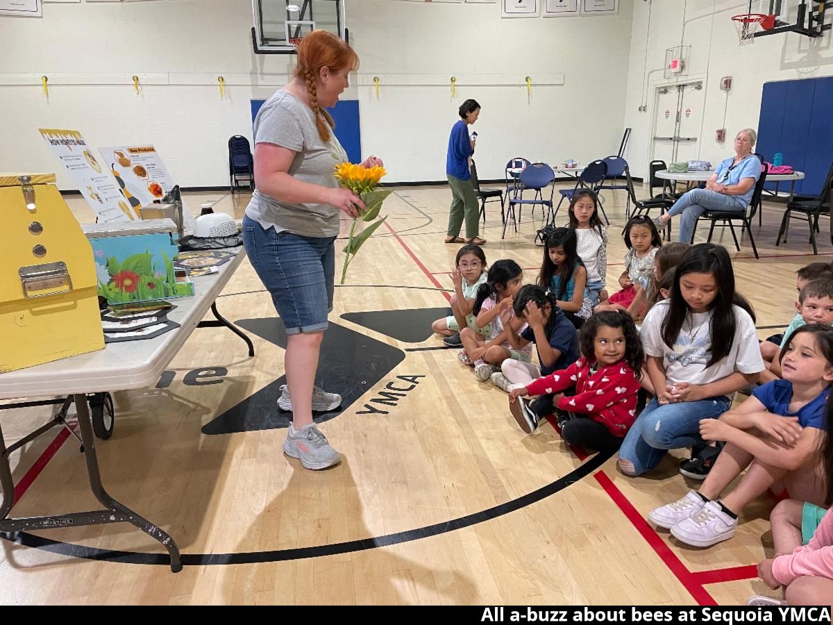 Our bees not only provided us with honey this week, they also made a special appearance at Lunch with the Library at Sequoia YMCA. Ms. Jennifer captivated the audience with a live demo of an enclosed hive, showcasing how bees collect pollen and more. Lunch with the Library provides enriching and engaging activities following the Sequoia YMCA free summer lunch program. Lunch is served 12-12:30pm. You’ll find us following lunch on Mondays through July 29, from 12:30-1:30pm.