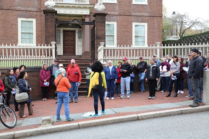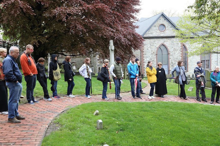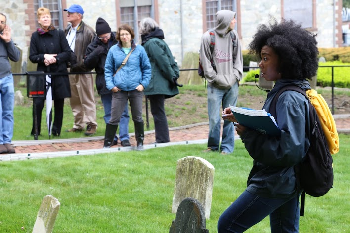During our mile walk, standing in the shadows of buildings laid with the pain of thousands of enslaved people, closed our eyes and caught glimpses of lives lived long ago in places we see every day. Along the way we stopped at six sites important to the stories of the free and the enslaved, the rich and the poor and everything in between. With every step participants followed the accounts of wealthy merchants, Ghanian insurrectionists, college students, slave traders, Episcopal church leaders and members, sailors, insurance investors, a bitter housewife, Quaker slave owners and Quaker abolitionists, enslaved chocolatiers, free black home owners, disenfranchised Irish immigrants, and three women buried as "faithful servants" beneath a single foot-stone.