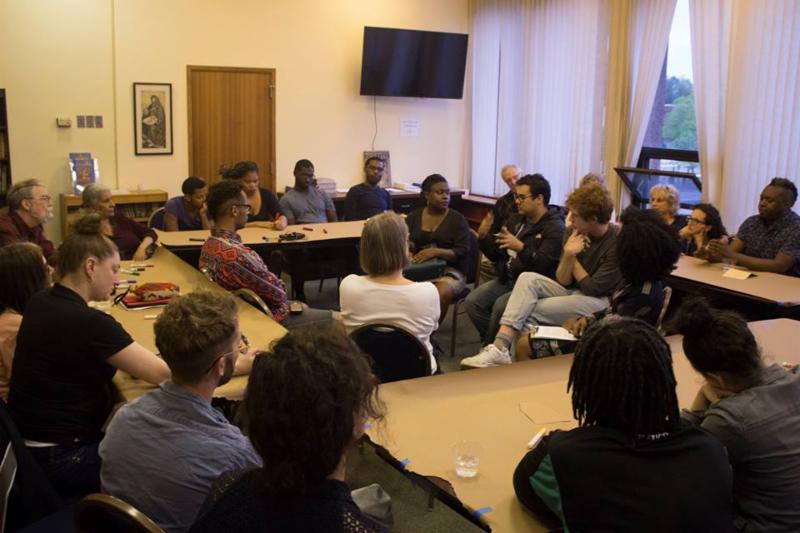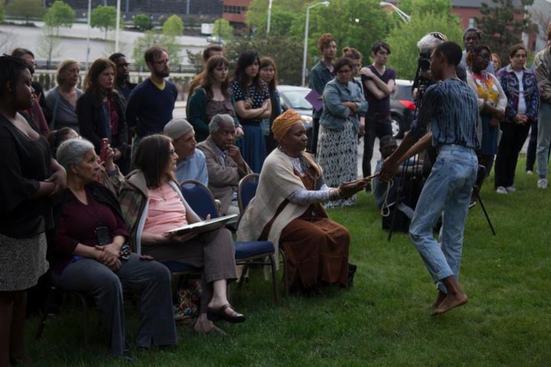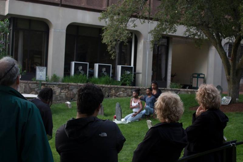 After a long pause, Arielle Julia Brown, the Artist-in Residence at the Center for Reconciliation and the creator of the program, called the audience to join her inside the Episcopal Diocese of Rhode Island for a conversation with historian Joanne Pope Melish and a fish-bowl style audience talk-back. Melish is a professor, lecturer and author of the book "Disowning Slavery: Gradual Emancipation and Race in New England, 1780-1860."