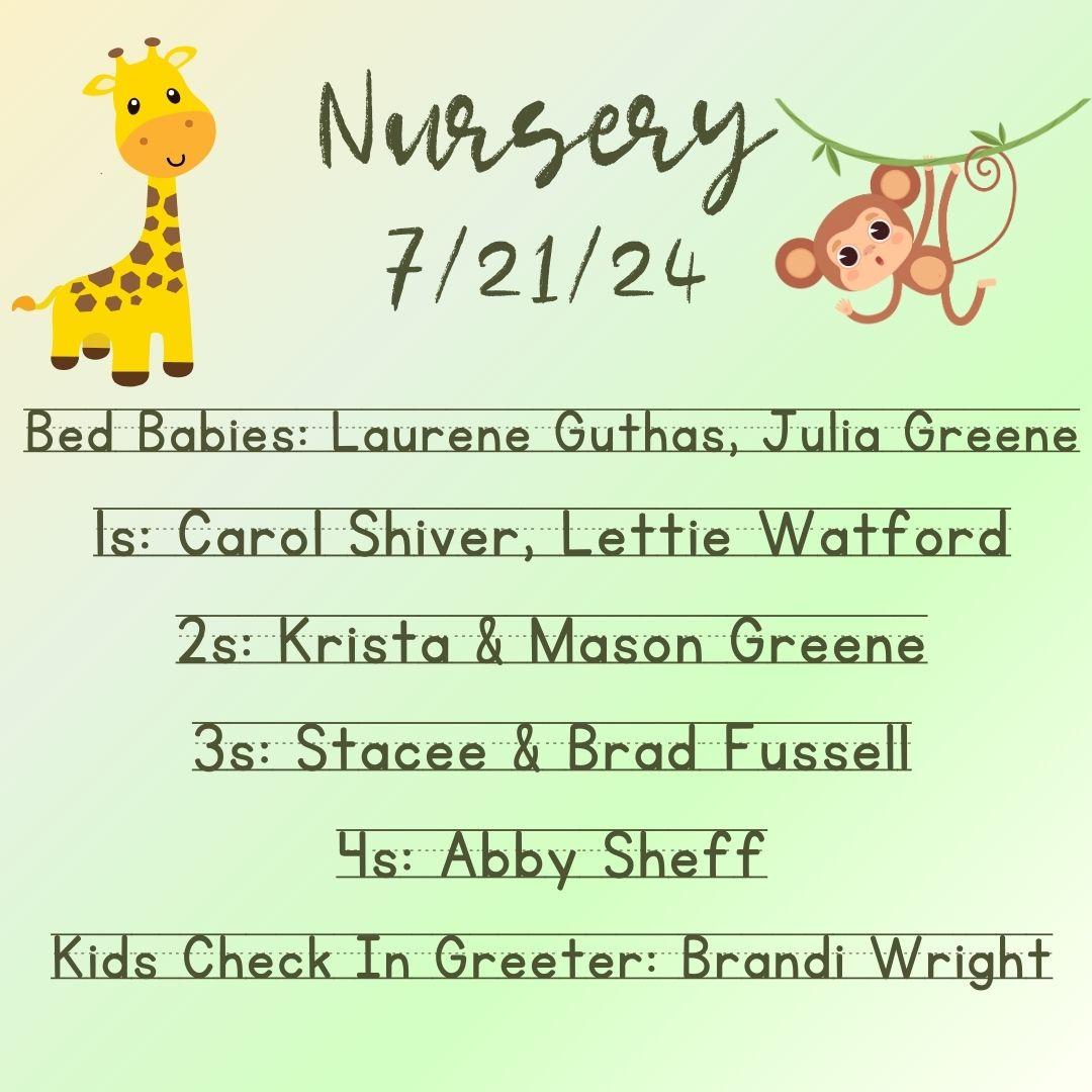 To sign up as a Nursery Volunteer, please use our convenient sign-up form! Click Here to Volunteer