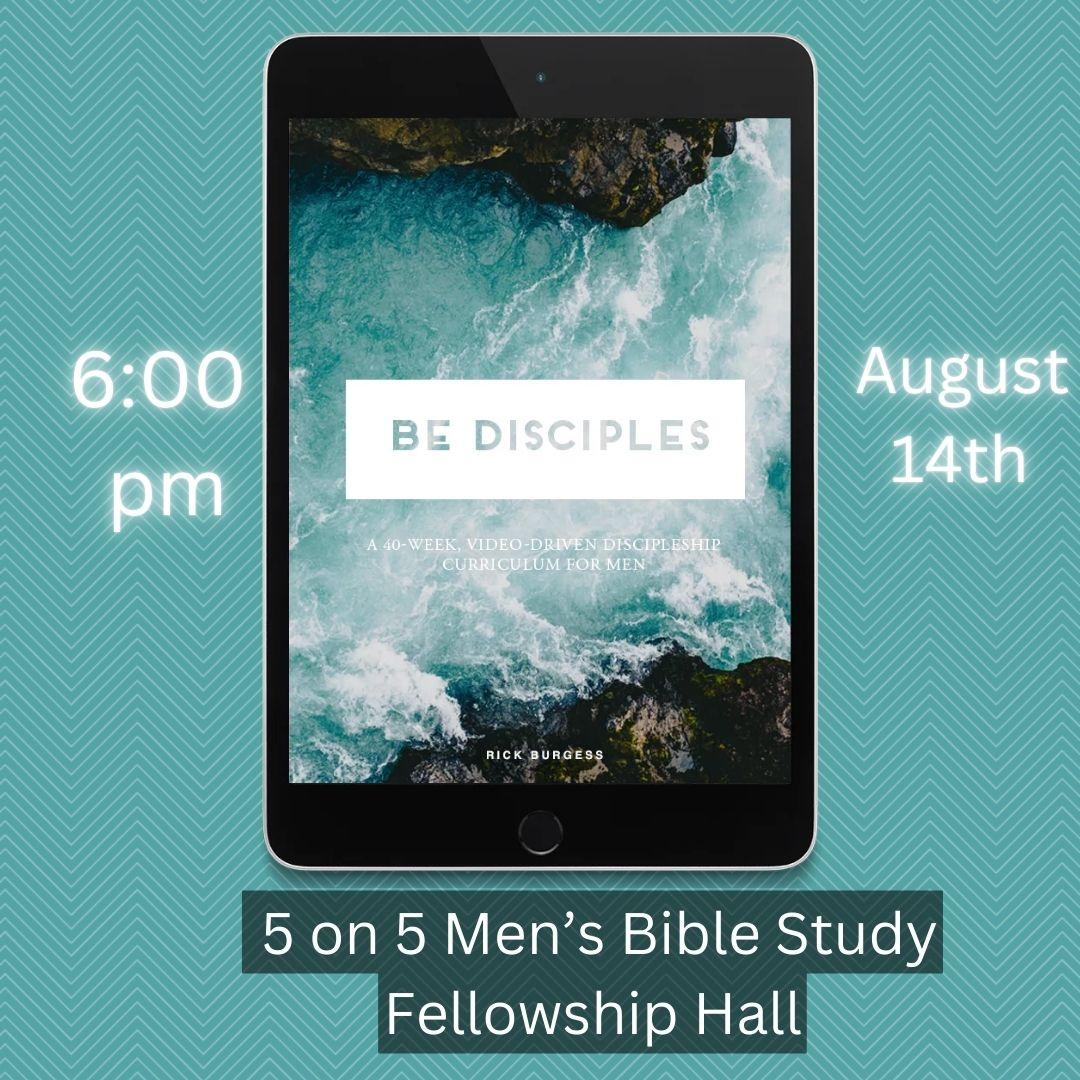 Begins at 6pm in the Fellowship Hall. This Fall we begin our next study from The Man Church called "Be Disciples" designed to help men discover what it means to be disciples of Christ!