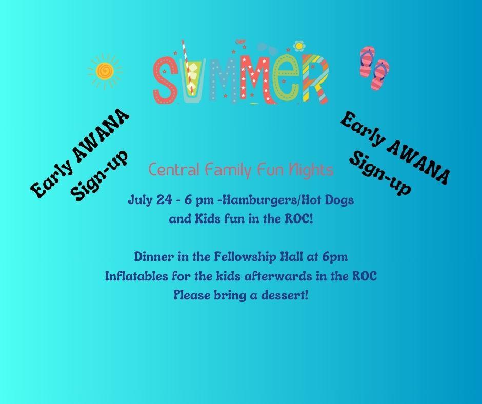 Our final Summer Family Fun Night is Wednesday, July 24th @