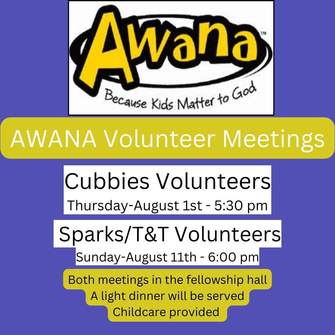 These meetings are also considered interest meetings if you want to see what being an AWANA Volunteer is all about. Please join us!