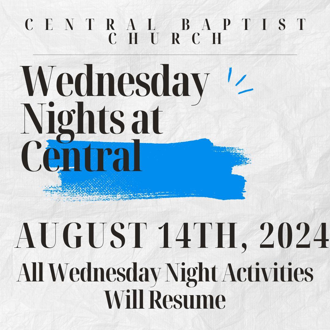Wednesday Nights are Family Nights at Central Baptist with something for every member of your family! Please make Wednesday nights a priority by participating in the many ways we offer to study God's Word!