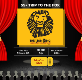 On Friday, October 11th, the 55+ Group will take a trip to the Fox Theater in Atlanta to see The Lion King Musical! The show begins at 1pm and the cost is $120. This includes transportation, but not meals. More information will be given later about departure time. To register, click here. | | | |