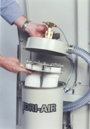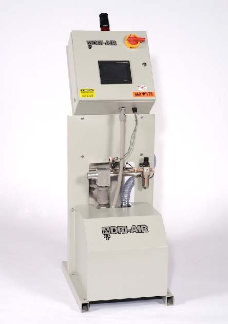 installation with one power and air connection. The 7" Dri-Control color touch screen allows for easy setting of load, purge, cleanout and alarm times. Quiet operation, small footprint and competitively priced.