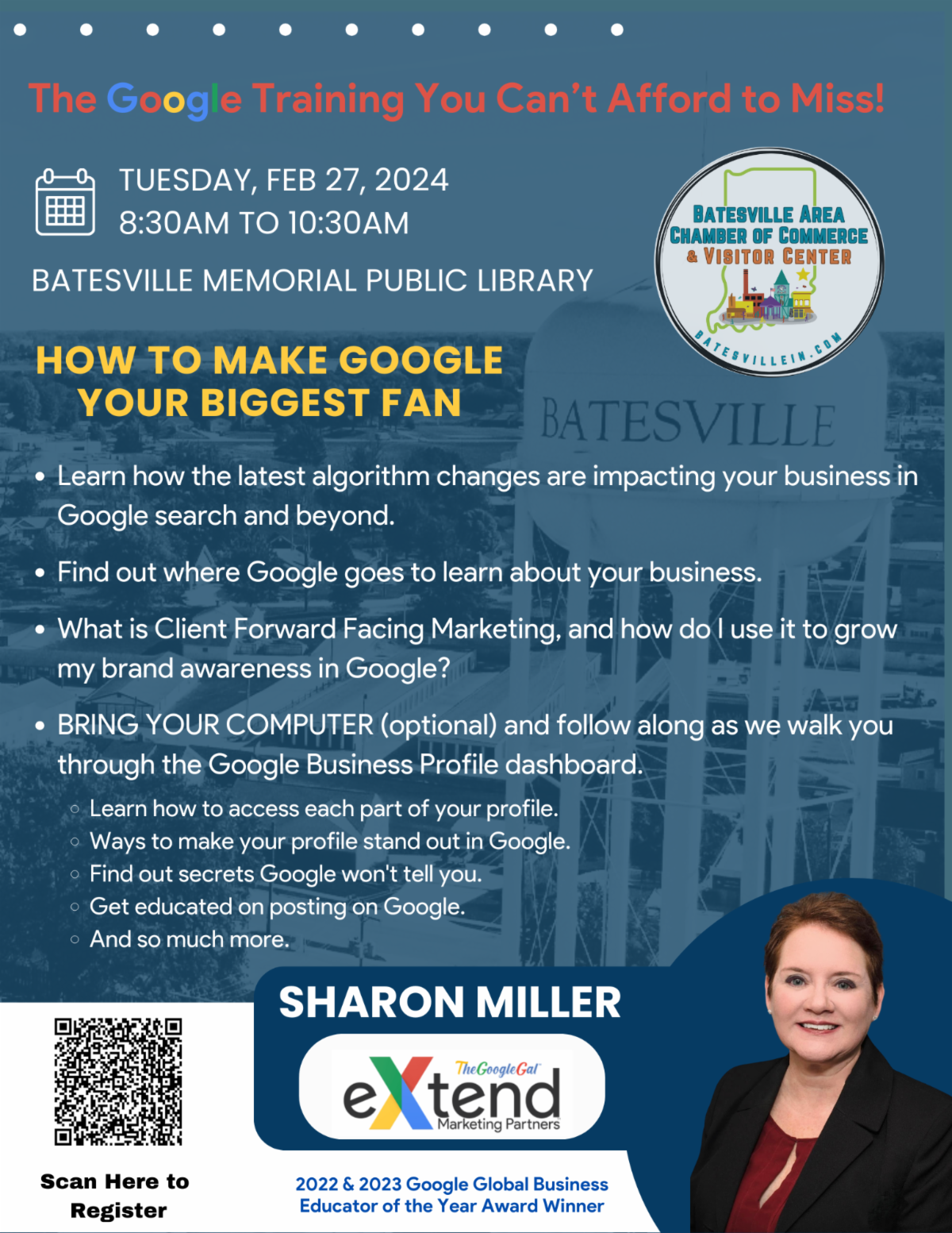 We are thrilled to announce our partnership with eXtend Marketing Partners to bring you "How to Make Google Your Biggest Fan"! It will be on Tuesday, February 27th from 8:30 am to 10:30 am at the Batesville Memorial Public Library! In this workshop, you will learn how to prepare for the algorithm changes that will impact your business in Google search and beyond. Don't miss this opportunity to stay ahead of the game, and register online now by CLICKING HERE.