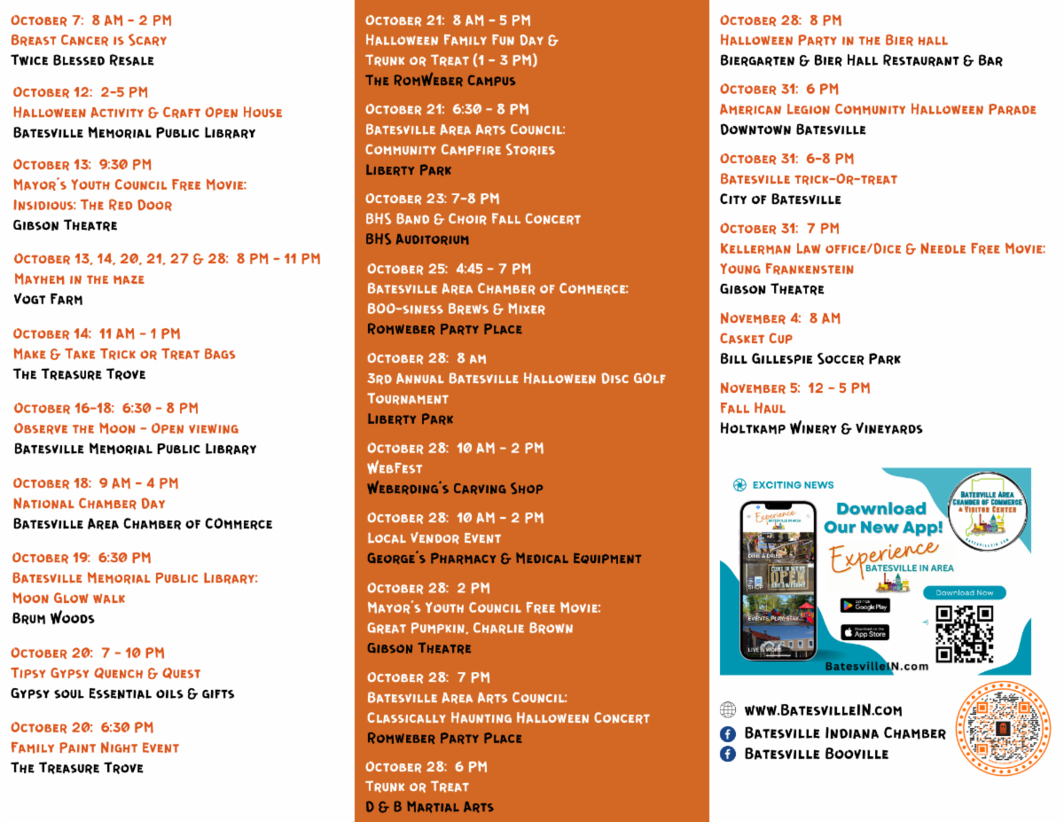 Something wicked this way comes all month long, visit Batesvillein.com or download our Experience Batesville mobile app, or LIKE US at Batesville BOOville for your Ghoulish Guide to Loving Batesville and the surrounding area.