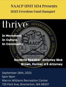 Join Keynote Speaker Attorney Nick Brown, former Western District US Attorney and Special Guest Speaker James Bible, Attorney, and Past President NAACP Seattle/King County at Marge Williams Recreation Center.