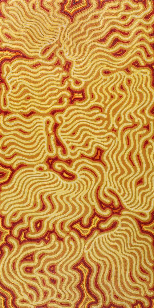Image: “Majardi Jukurrpa (Hairstring Belt/Skirt or Tassel Dreaming) - Mina Mina” © Madeleine Napangardi Dixon | |