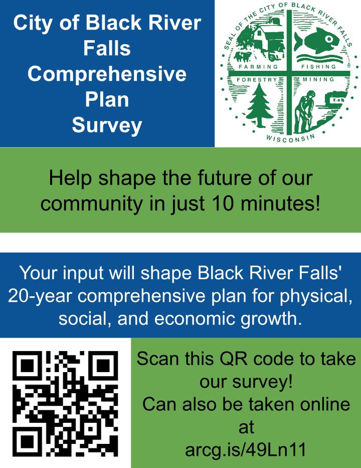 The City of Black River Falls is updating the City's Comprehensive Plan and your opinions, ideas, and input are important and key to a successful vision for our community.